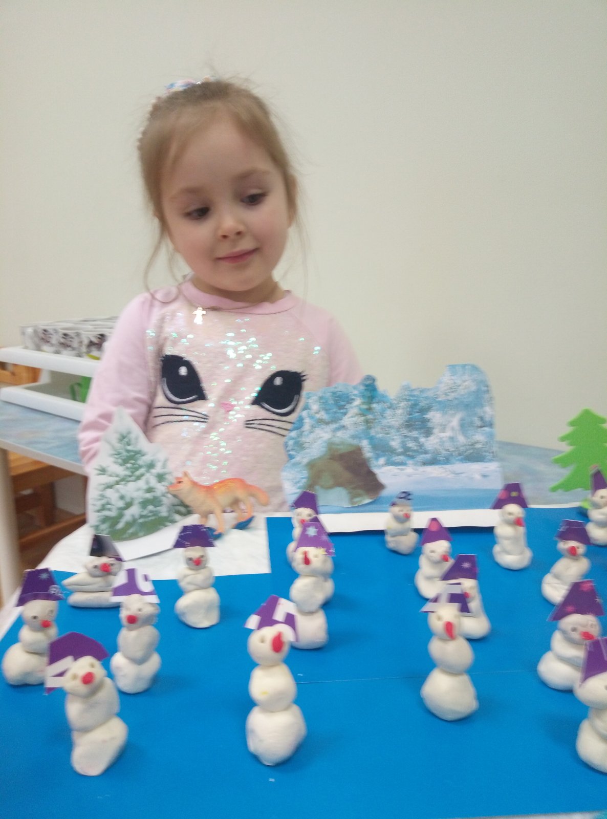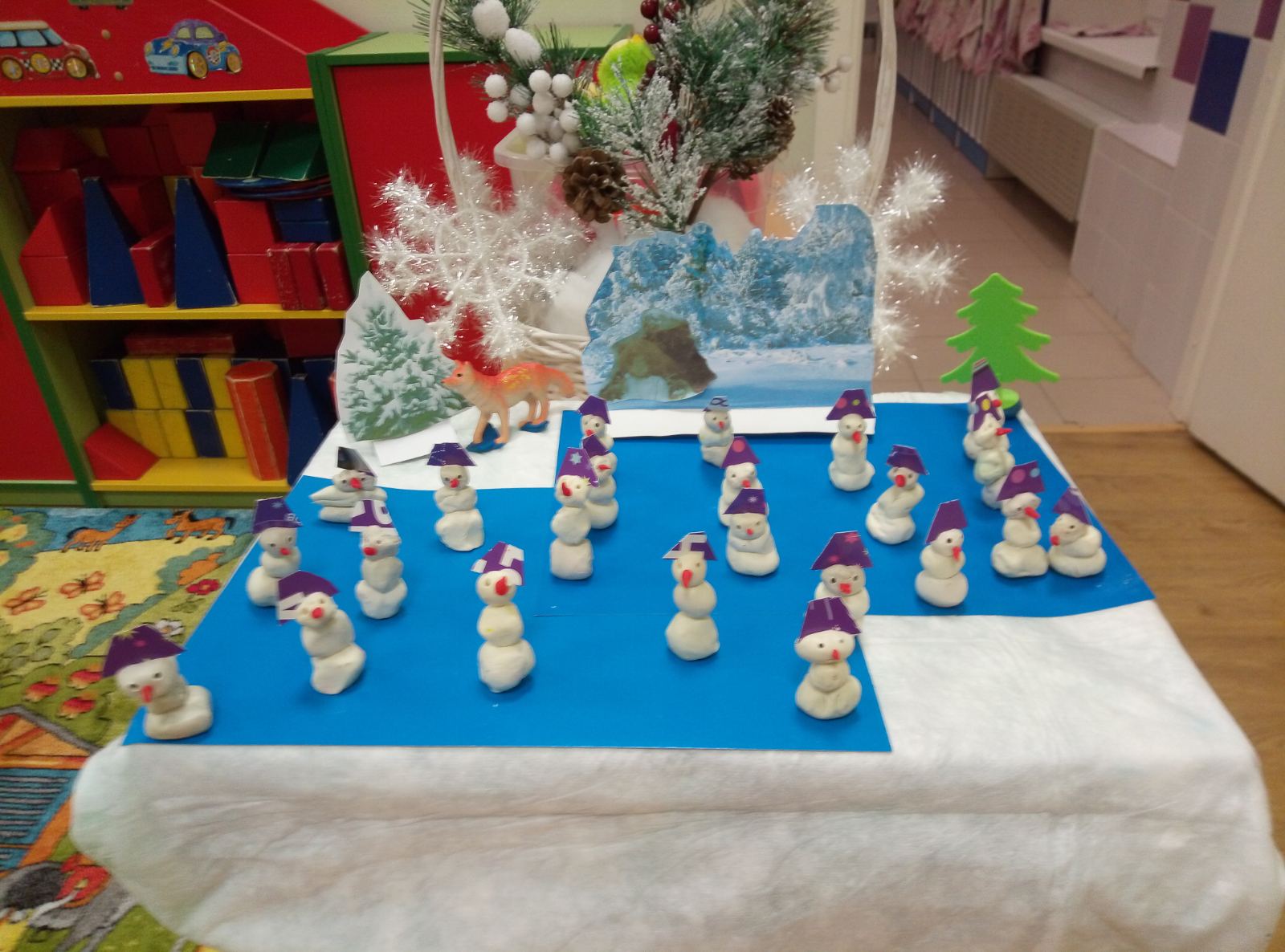 Детки лепили из пластилина крох-снеговичков!!