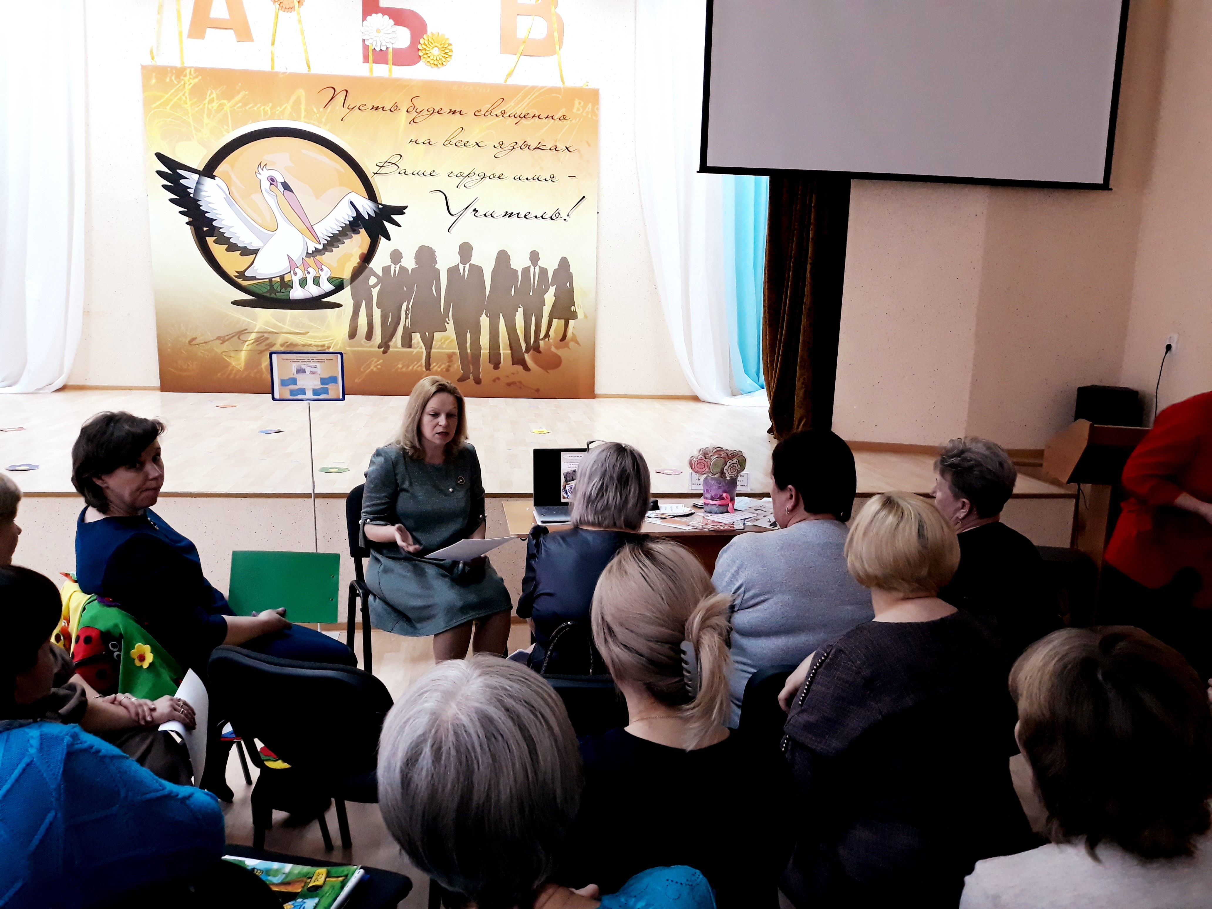 В первом центре передавала опыт Фомина Галина Юрьевна. Ее выступление было на тему "Управляя вдохновляем" или эффективные механизмы управленческой модели "Пять-У".