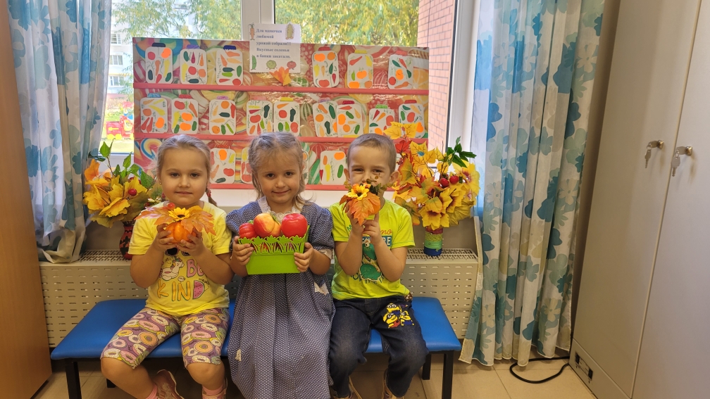 Дети средней группы №8 "Мармеладки" с удовольствием вспомнили, какие дары приносит осень, и сделали аппликацию на тему: