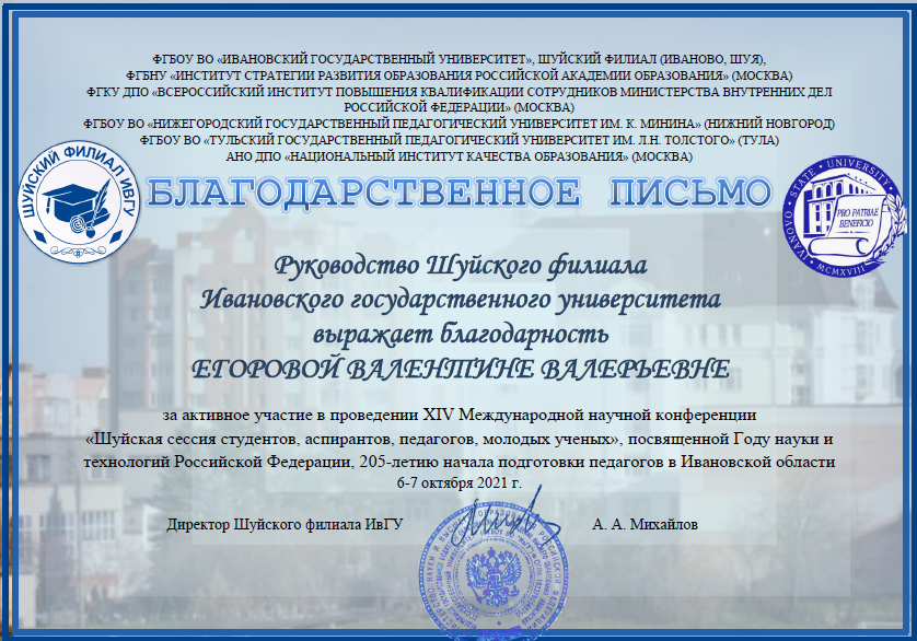 Педагоги МБДОУ "Детский сад №13" "Карамелька" приняли активное участие в XIV Международной научной конференции "Шуйская сессия студентов, аспирантов, педагогов, молодых учёных", посвященной Году науки и технологий Российской Федерации.