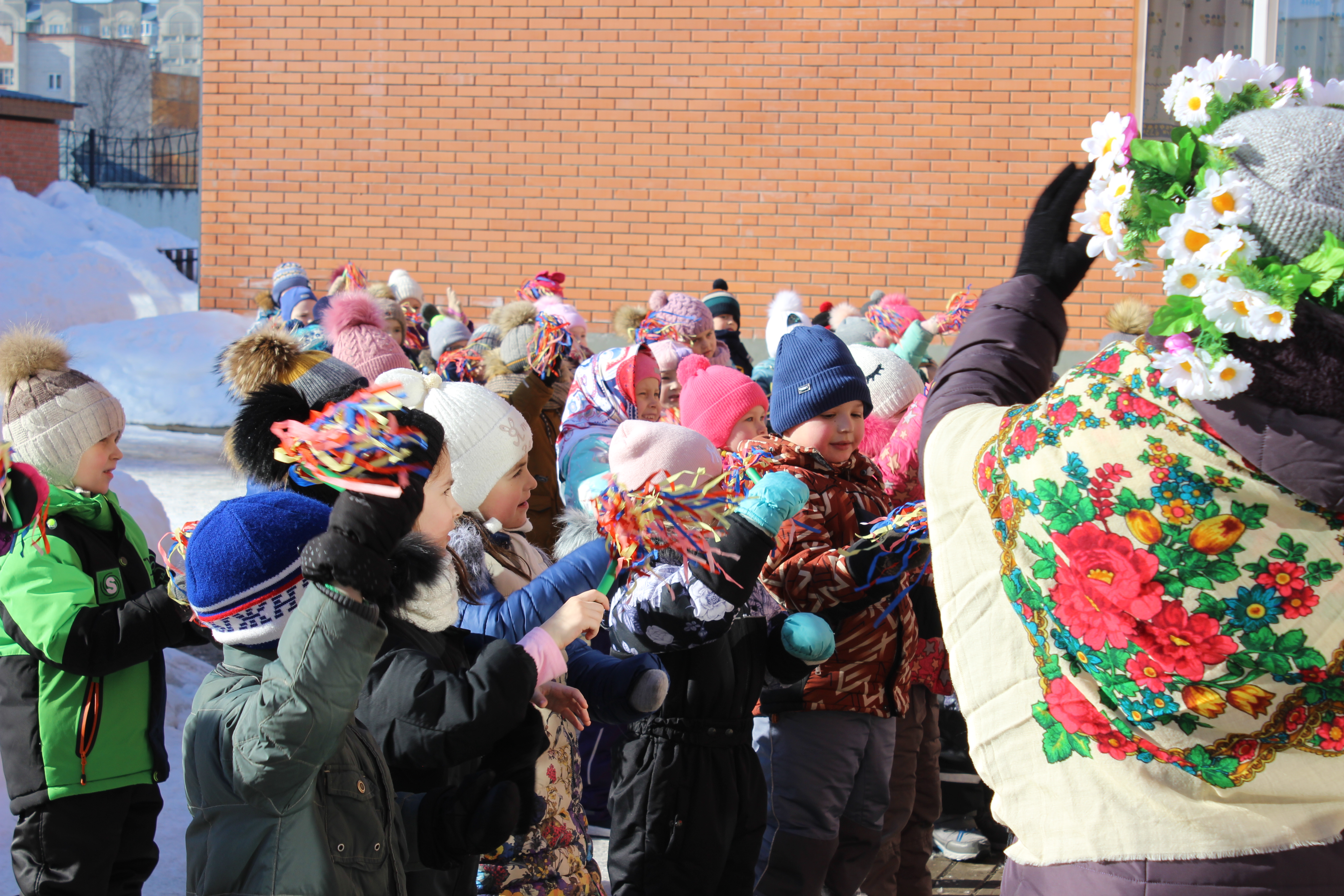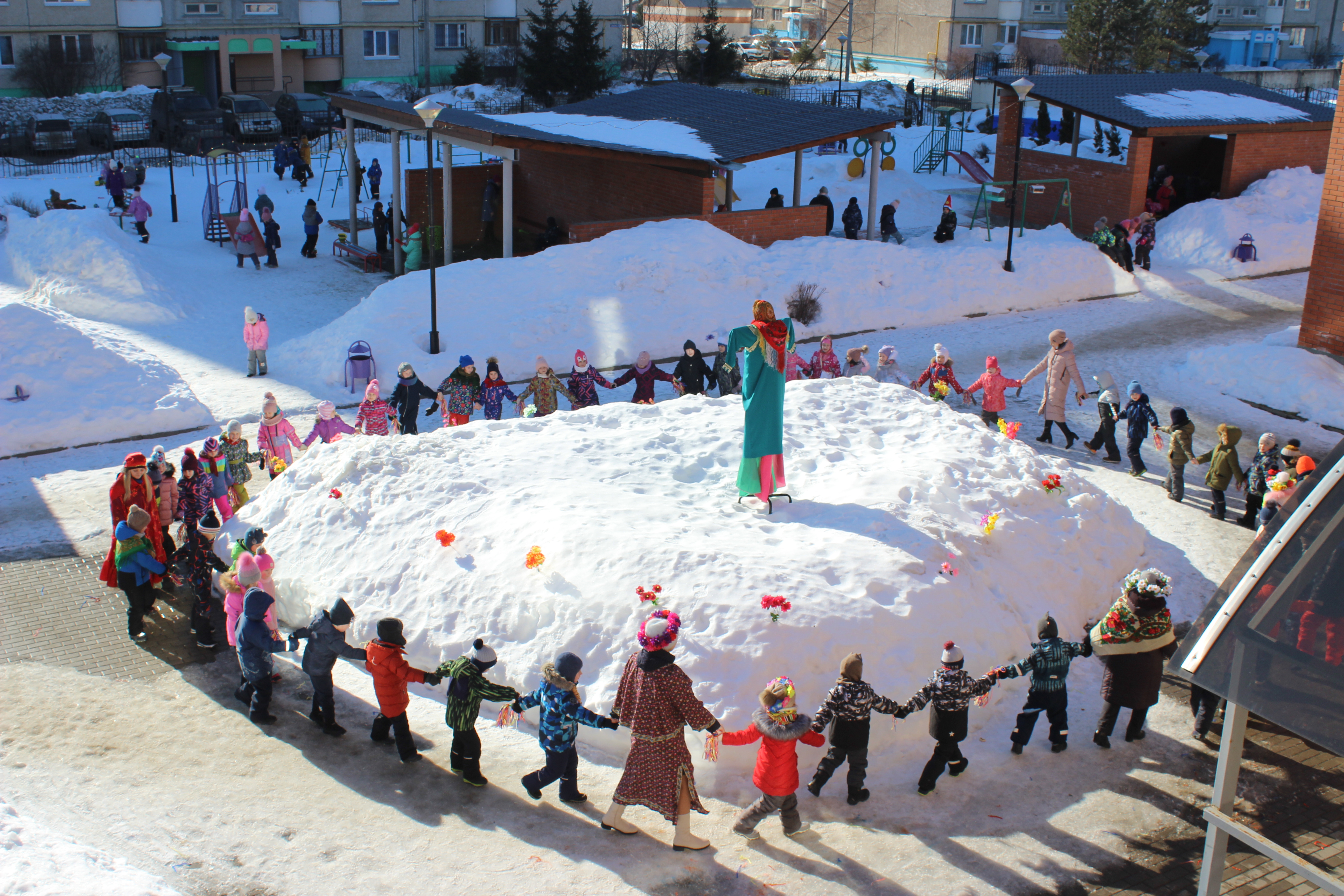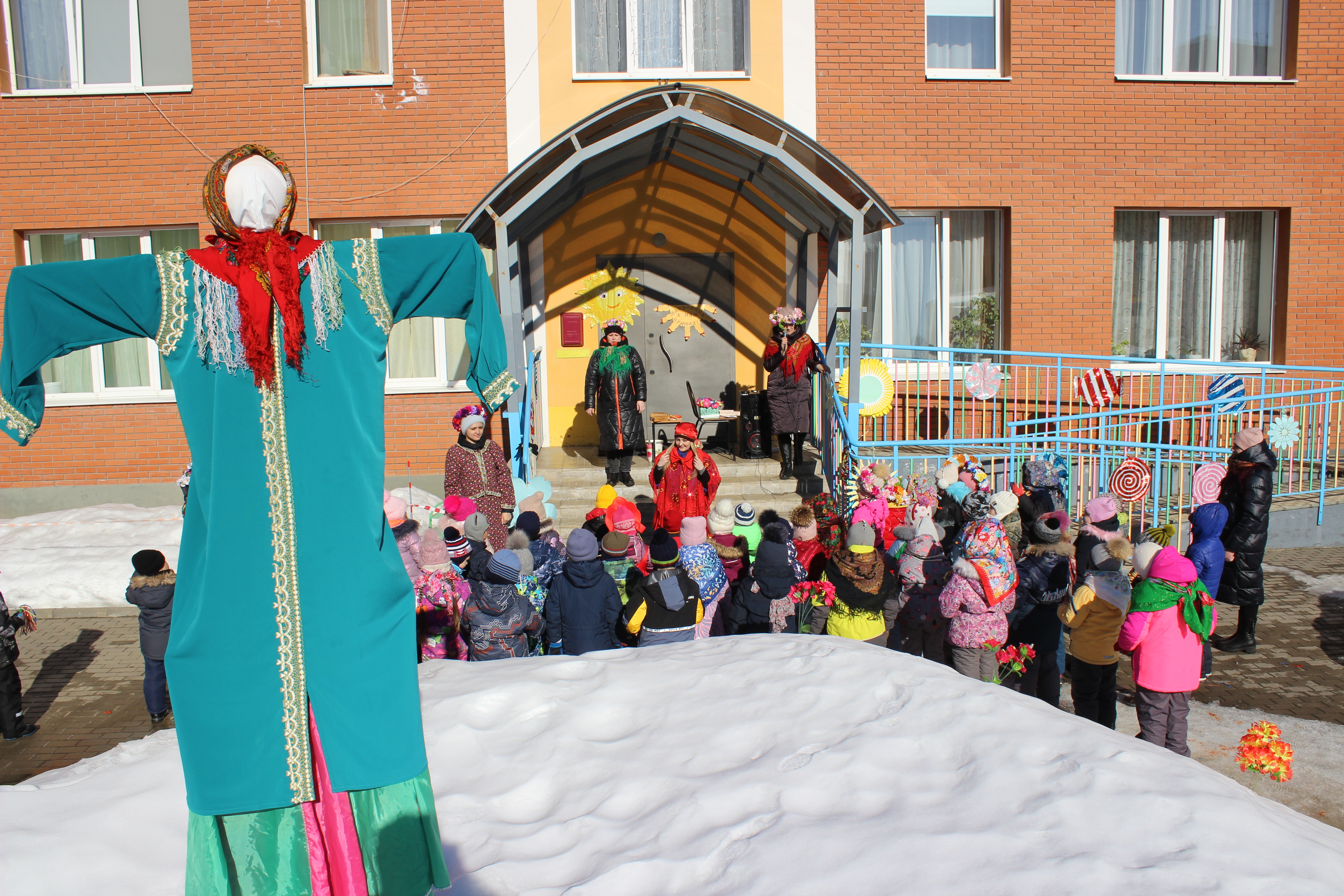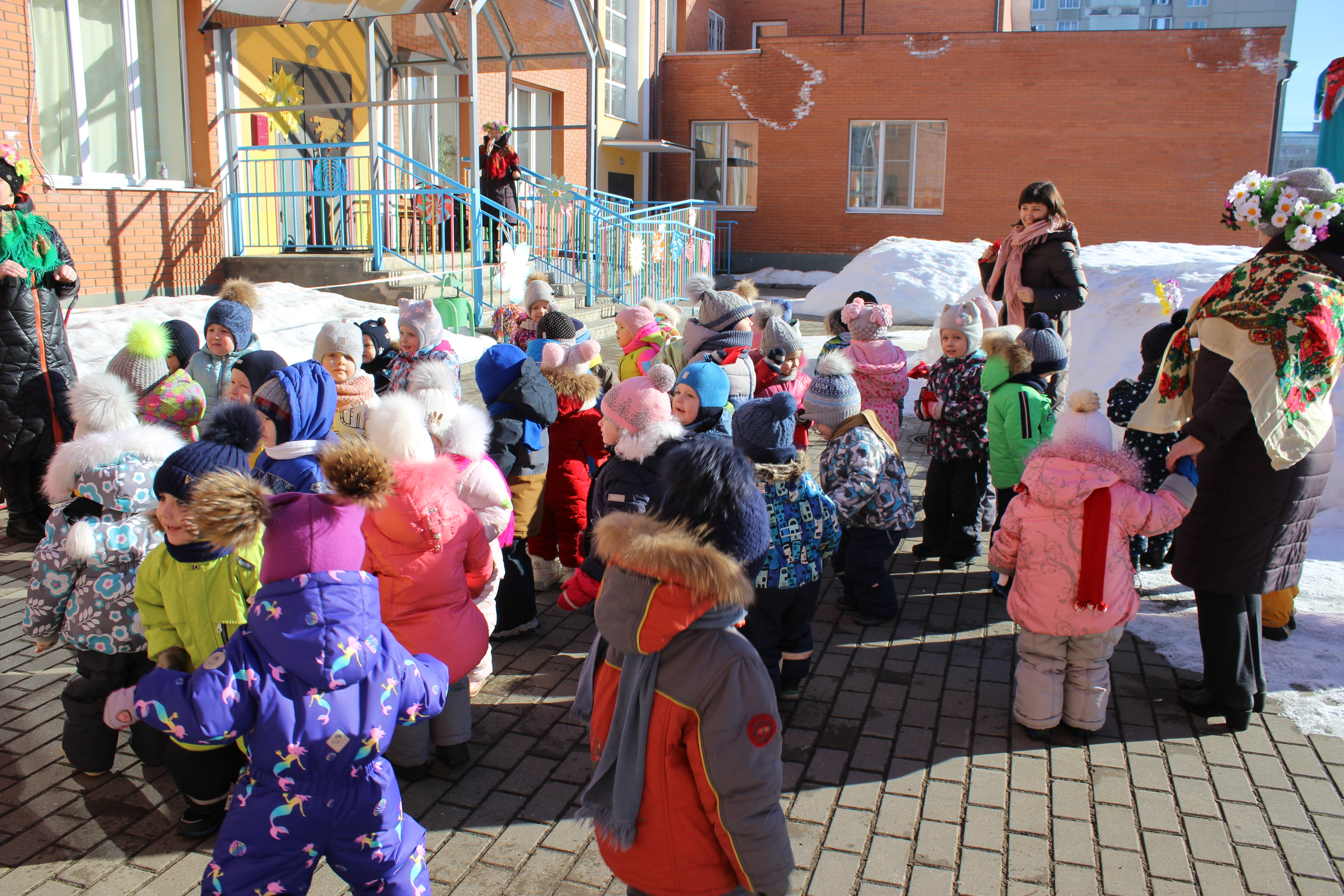 Сегодня в "Карамельке" дети встречали МАСЛЕНИЦУ с играми, плясками, песнями, призывали весну и радовались солнечному деньку.
