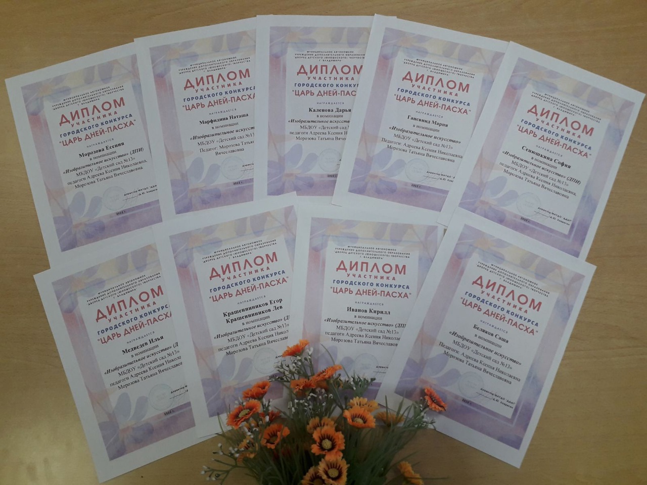 Группа 5 "Бонпаришки" приняла активное участие в городском конкурсе "Царь дней - Пасха". 9 воспитанников награждены дипломами участника конкурса!
