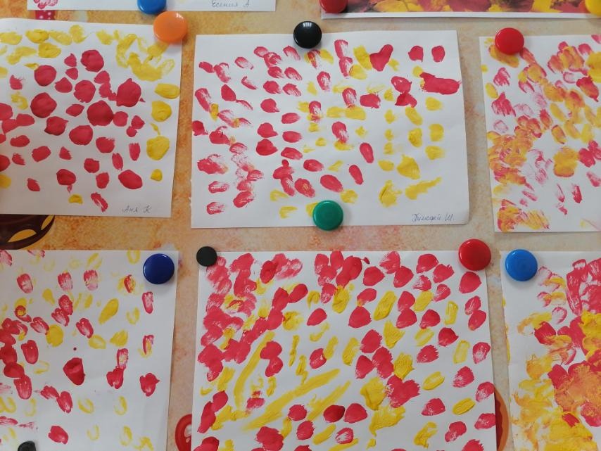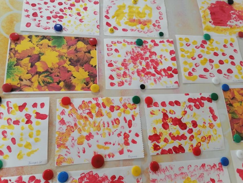 Наши маленькие "Шоколадки" рисовали красивый ковёр из осенних листьев необычным способом. Они прикладывали ворс кисти к бумаге, наши художники очень старались!
