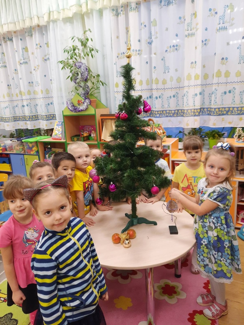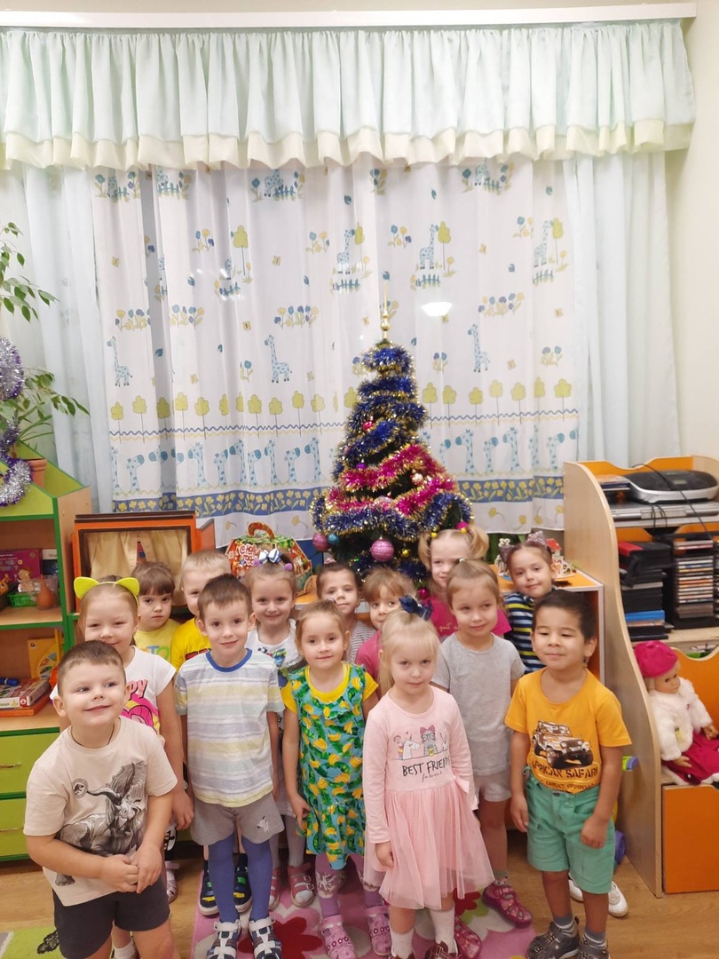 А вот наши маленькие "Сластёны" уже нарядили ёлочку, с радостью спели песенки и даже станцевали танец вокруг нарядной красавицы!
