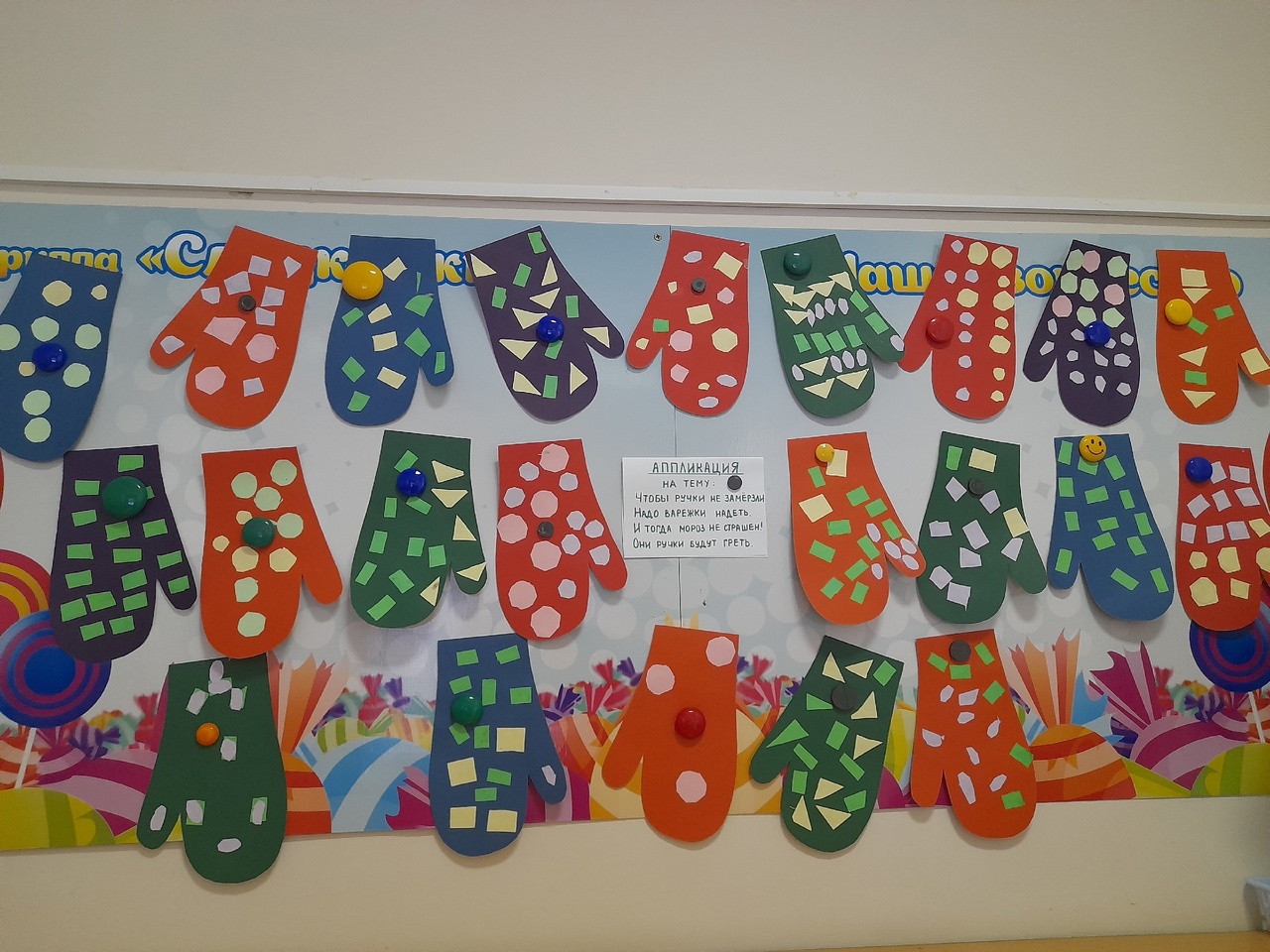 Наши "Сладкоежки" клеили красивые снежные зимние варежки.