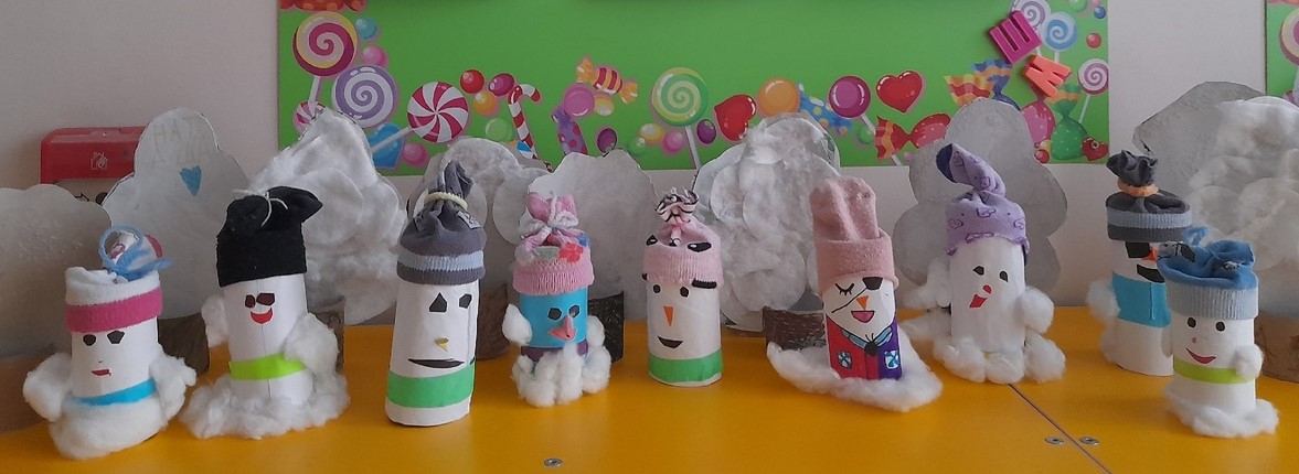Хоть зима и подходит к концу, наши «Лакомки», "Шоколадки" и «Бонпарижки» не хотят так быстро прощаться с ней, они смастерили вот таких замечательных снеговиков!