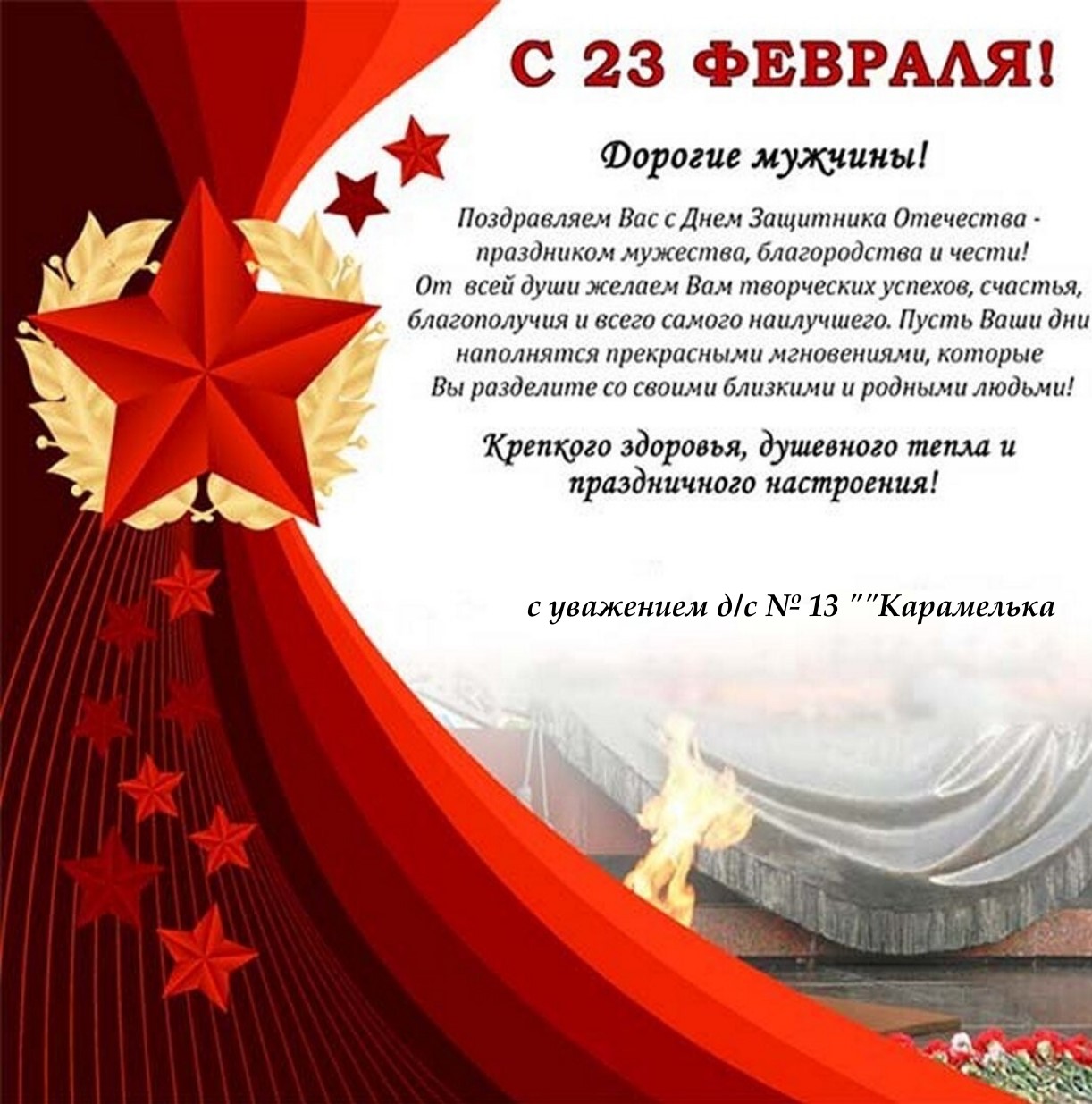 Детский сад "Карамелька" и воспитанники поздравляют всех мужчин с Днем защитника Отечества!